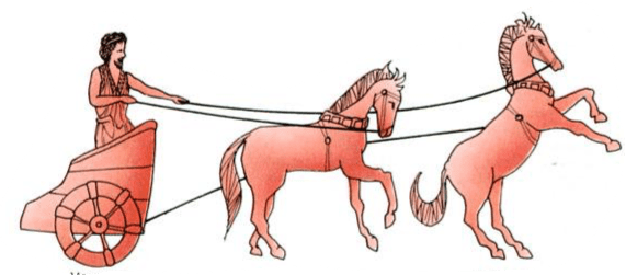 Platon verdeutlicht die Struktur der Seele – Die Antriebskräfte und die Zentralsteuerung – in Form eines Gleichnisses.**** Man muss wissen, dass Platon ein Schriftsteller-Philosoph ist, dessen Genialität durch seine Textkomposition, Metaphorik und Wortwahl durchscheint. Die Seele des Menschen, sagt er, gleich einem Gespann mit zwei Rössern. Das eine Ross ist das Pferd des Eifers (griechisch: thymoeides), das andere das Pferd der Begierde (griechisch: epithymetikon). Gelenkt wird das Gespann von der Vernunft (griechisch: logistikon).